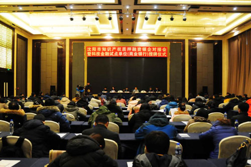沈阳站讯 11月30日,沈阳市知识产权质押融资银企对接会及科技金融试点单位(商业银行)挂牌仪式在东北大学国际学术交流中心举办。辽宁省知识产权局副局长薛军,沈阳市科技局副局长王义清出席活动,部分区县市科技局长,金融机构、知识产权服务机构、中小微科技型企业代表约200余人参加会议。