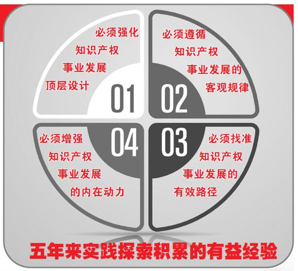 一是必须强化知识产权事业发展顶层设计。要站位党和国家事业发展全局,深入贯彻落实习近平新时代中国特色社会主义思想,不断强化党对知识产权事业的领导,按照党中央、国务院决策部署,加强事业发展顶层设计,理清事业发展的战略目标、战略思路和战略举措,努力使知识产权事业发展与国家战略部署相协调、相一致,提供有力支撑。