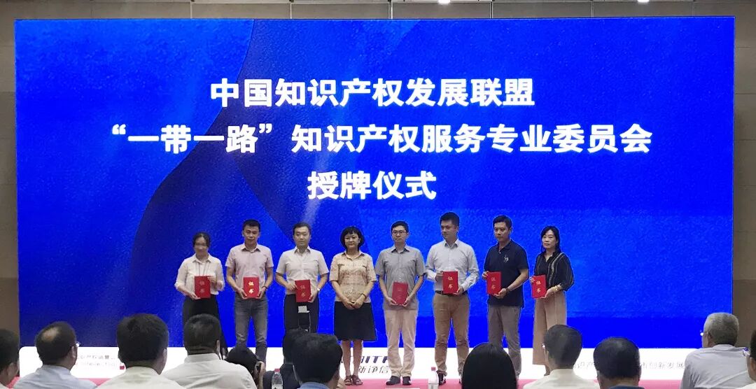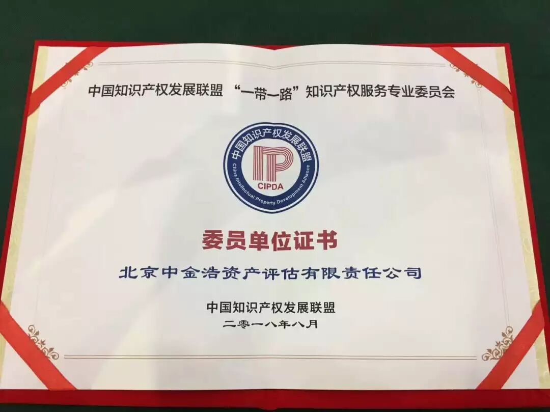 中国知识产权发展联盟“一带一路”知识产权服务专业委员会授牌仪式在论坛上举行,北京中金浩资产评估有限责任公司当选中国知识产权发展联盟“一带一路”知识产权服务专业委员会委员单位。